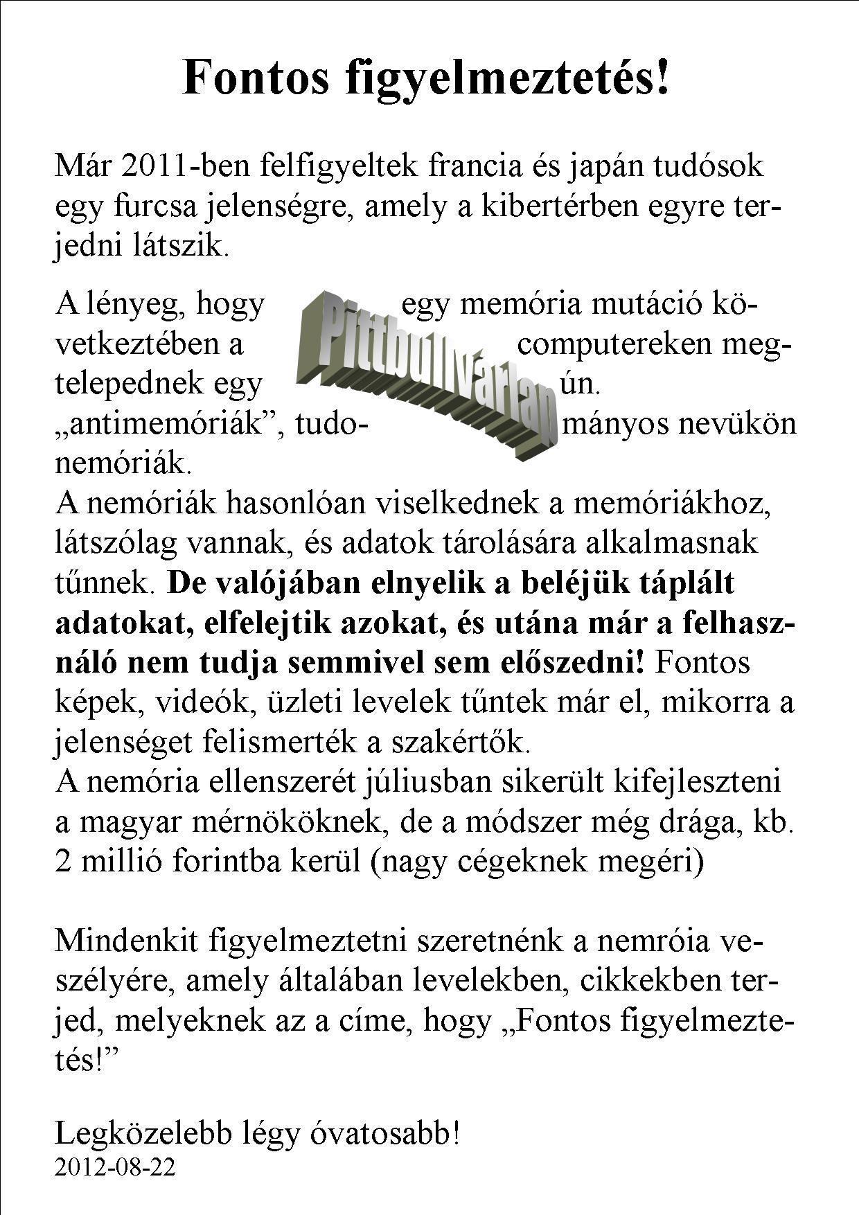 Annyira izgulok!2012. május 20. vasárnap - Pittbullvárlap (világkedvence) első példányának megjelenési időpontja. Az ötéves évforduló alkalmából központi ünnepséget tartunk országszerte. Kulmináció: 20-án 20 óra 20 perc 20 másodperc: a KTJ bázisán. |