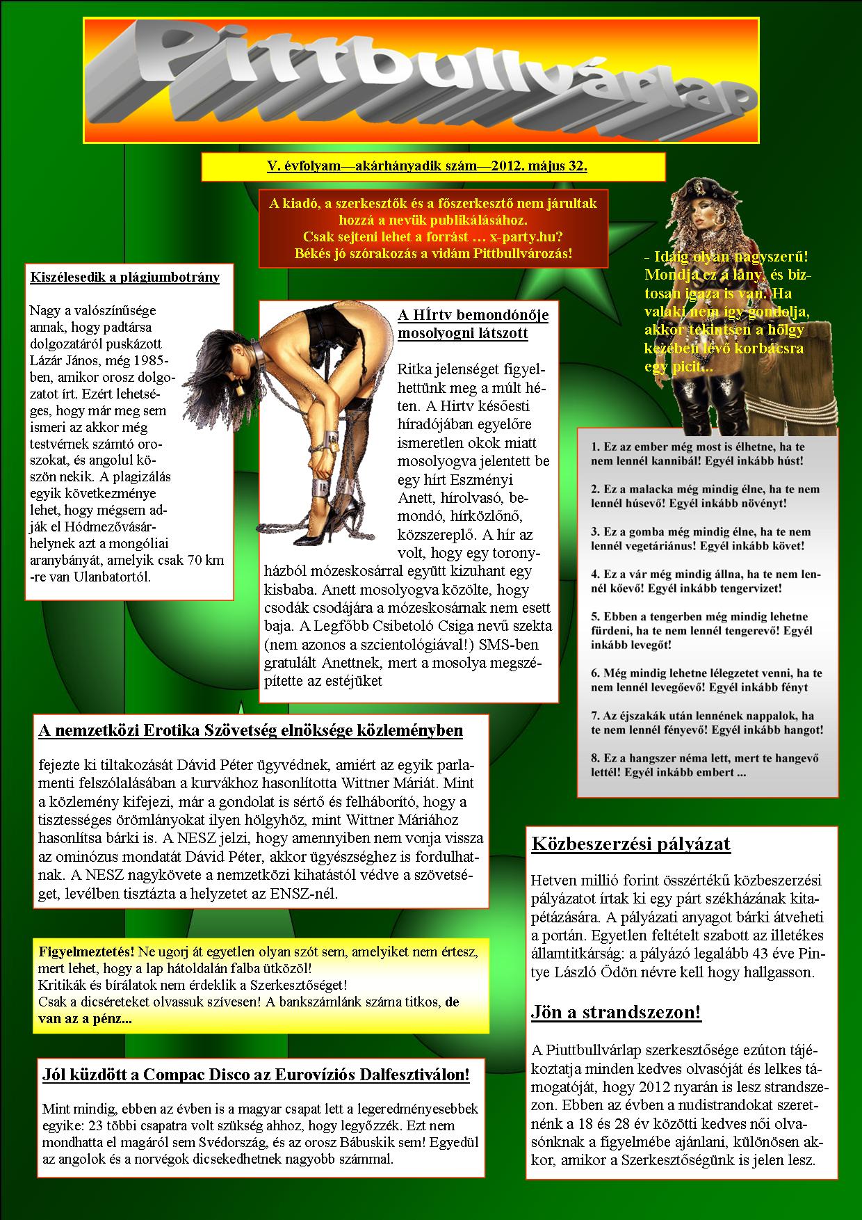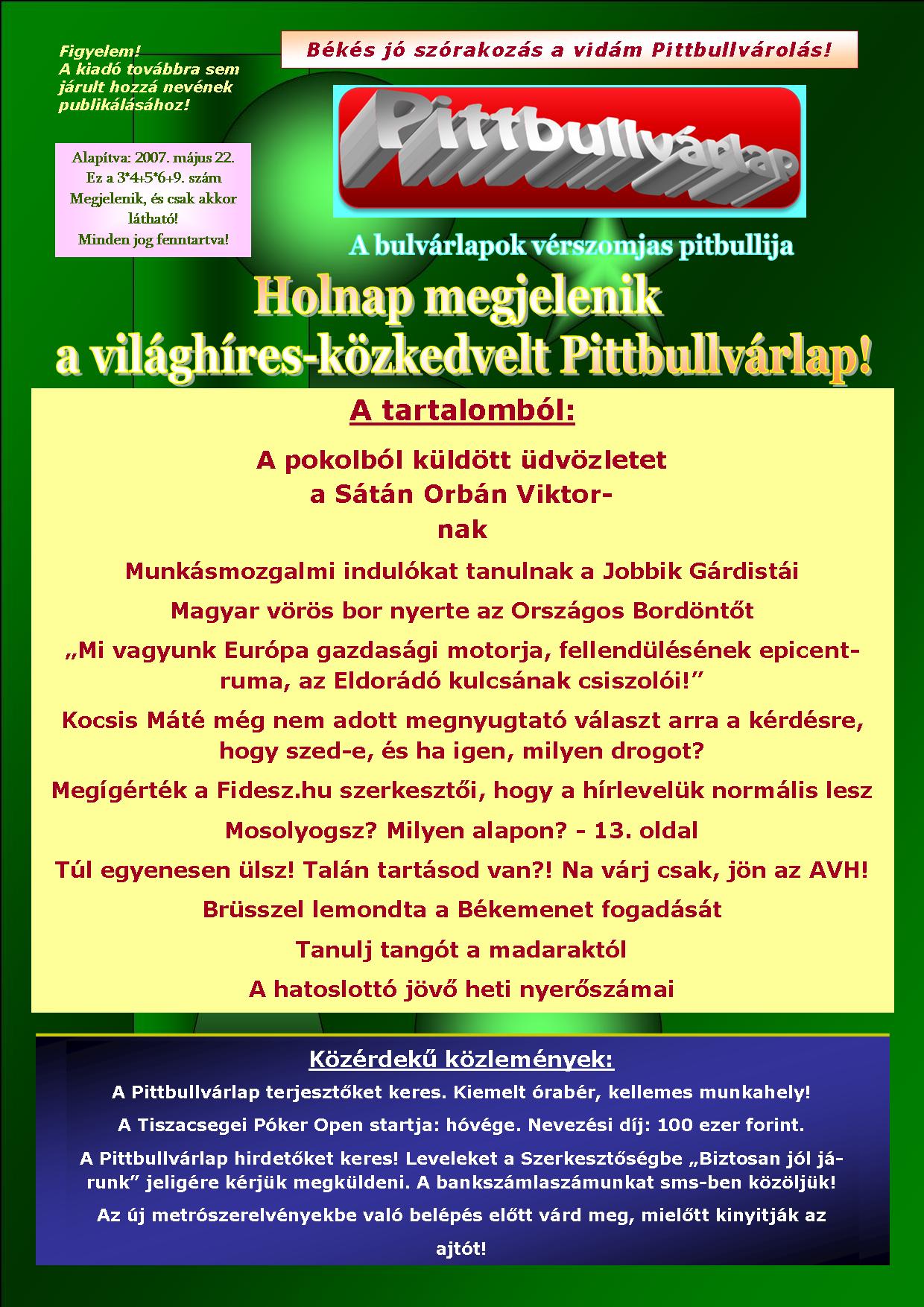 végre megjelent a Pittbullvárlap! *** Kérje az újságárusoknál! Előfizetni lehet a megyei kirendeltségeinkben. |