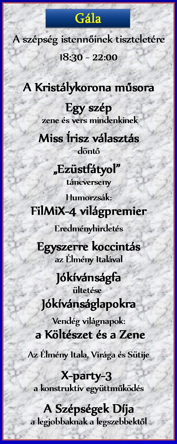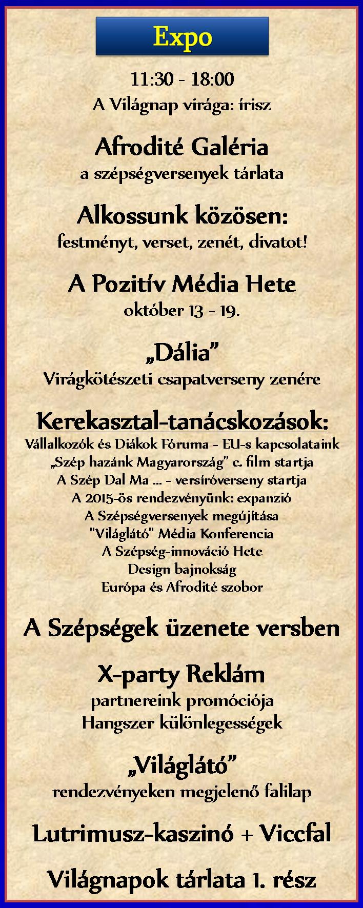 Következik: Laharo-party 2014. 11. 28. A Szépségkirálynők Hétvégéje 2014. 12. 5-7. |