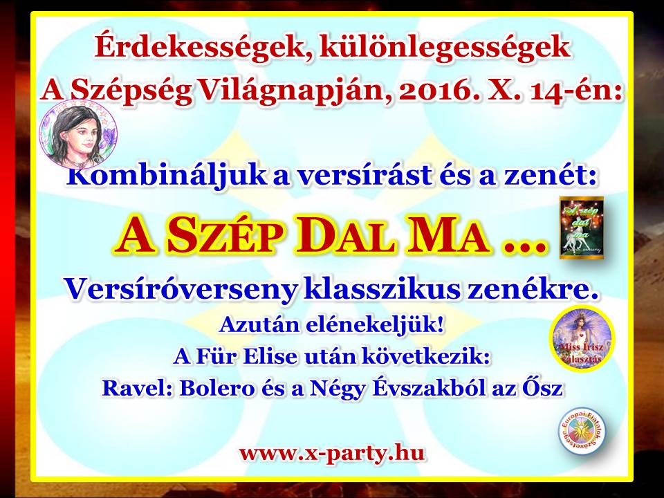 | 16:00 - 16:30 | "A Szép Dal Ma ..." - versíróverseny meghirdetése | |