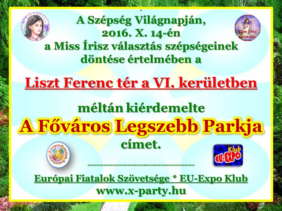 Díjának átadása A Főváros Legszebb Parkja - díjátadás A 15. Miss Írisz választás eredményhirdetése |