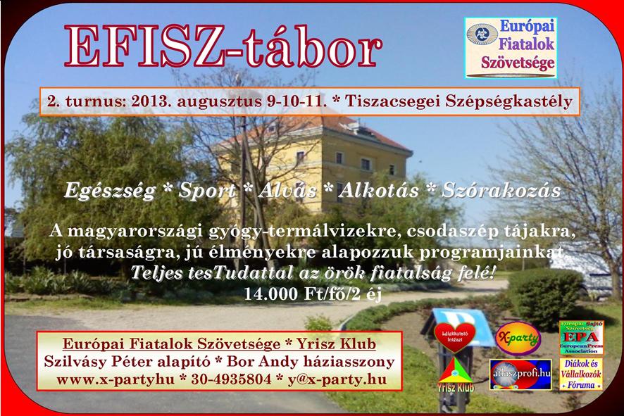 Az Európai Fiatalok Szövetségének egyik különleges táborának főpróbájára kerül sor. A fúziós tábor öt alappillére: egészség, sport, alvás, alkotás, szórakozás. A legendás szocializmus építő és KISZ-táborainak új dimenzióját is jelenti az EFISZ-tábor, melyben a Tiszacsegei Szépségkastély parkjának építése, a strand termálvizében gyógy-wellness tréning, fókuszcsoportos megbeszélések, álomkontroll módszerek és esténként szórakozás is van.