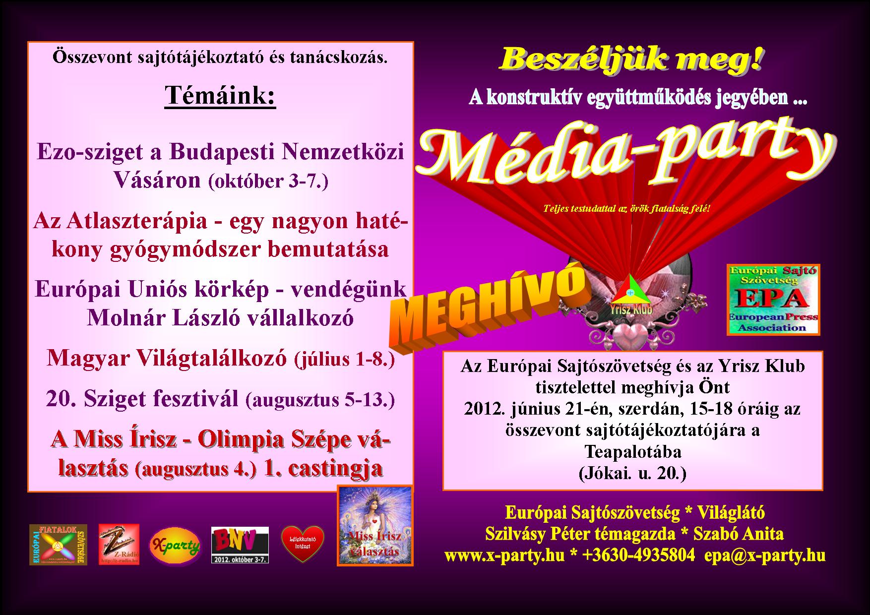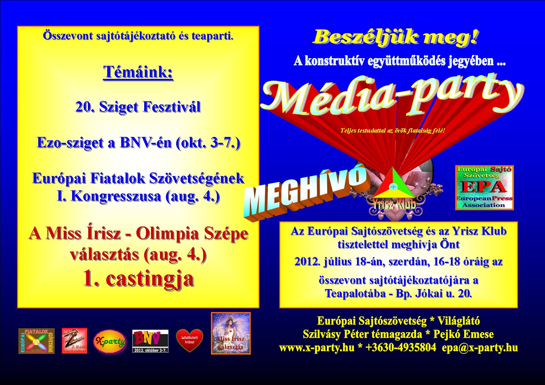 8. +Médiaparty – 2012. július 18. szerda, 16-17 óra – Teapalota (Bp. Jókai u. 20.)