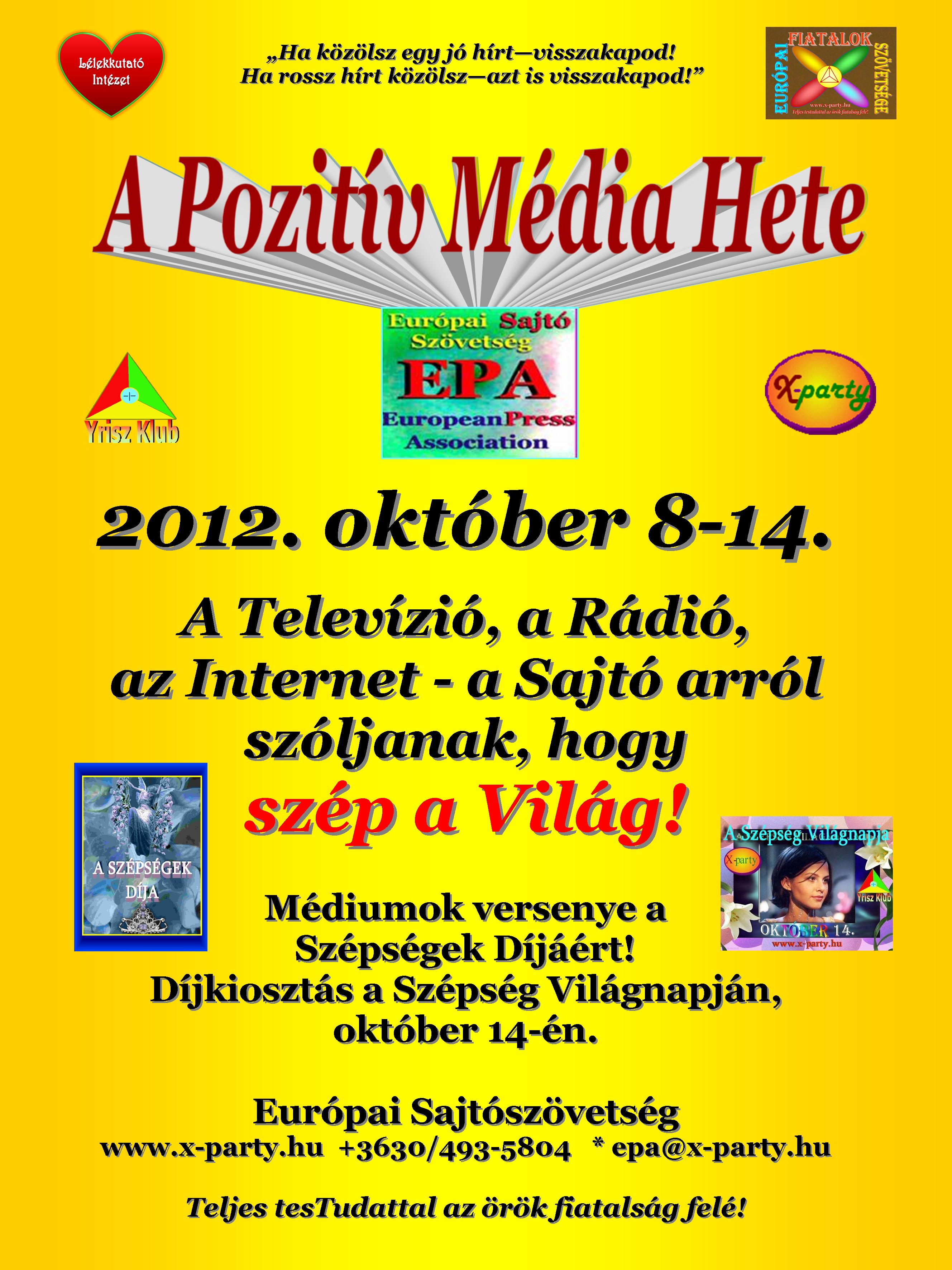 2009-ben kezdeményeztük először a Pozitív Média Hetét. Célunk az, hogy a jó, érdekes, értékes hírekkel is hozzájáruljunk állapotunk javításához, céljaink sikeres megvalósításához.