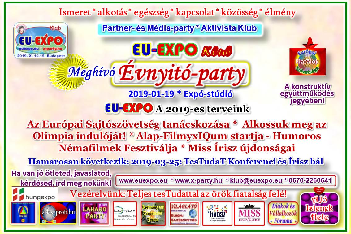 Január 20. – Évnyitó-party: EU-EXPO tervei, A Szépség Világnapja X. 14. nemzetközi expanziónk