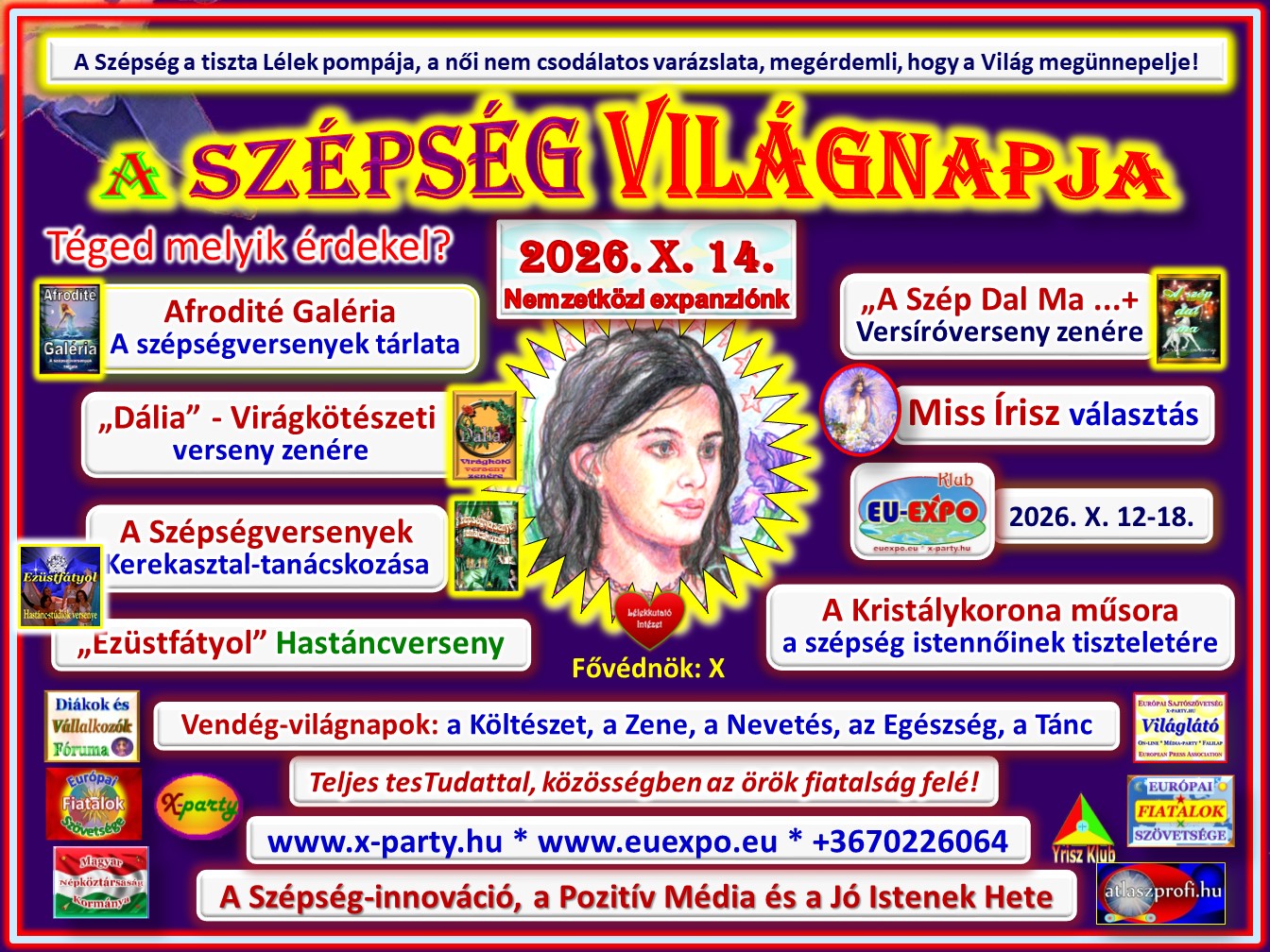A Szépség a tiszta Lélek pompája, a női nem csodálatos varázslata, megérdemli, hogy a Világ megünnepelje!