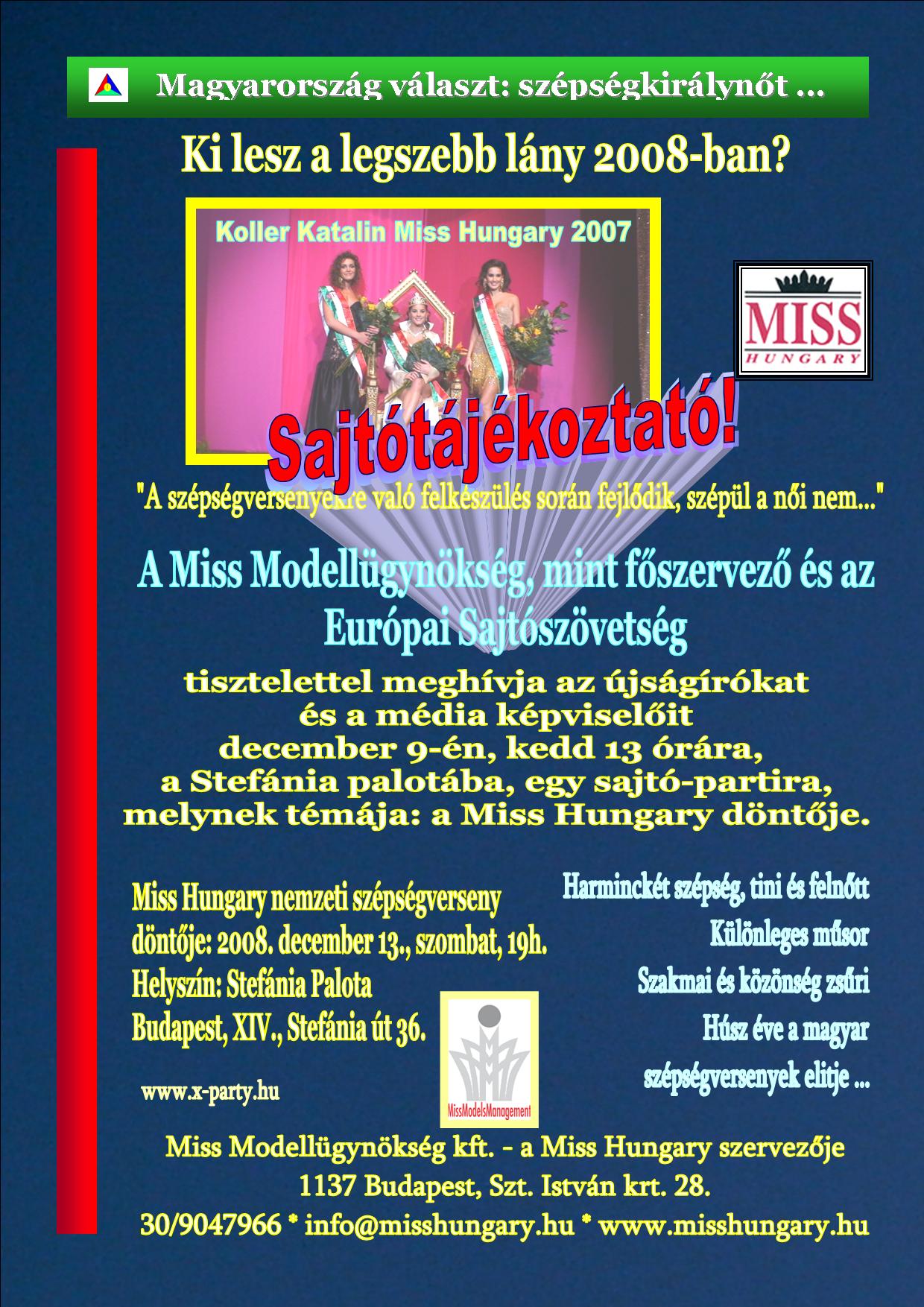 Téma: Miss Hungary döntője, december 13-án, 19 órakor, a Stefánia palotában