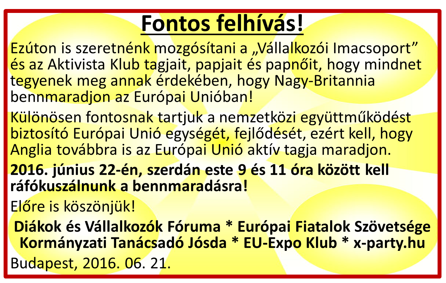 Maradjon tagja az EU-nak Nagy-Britannia!